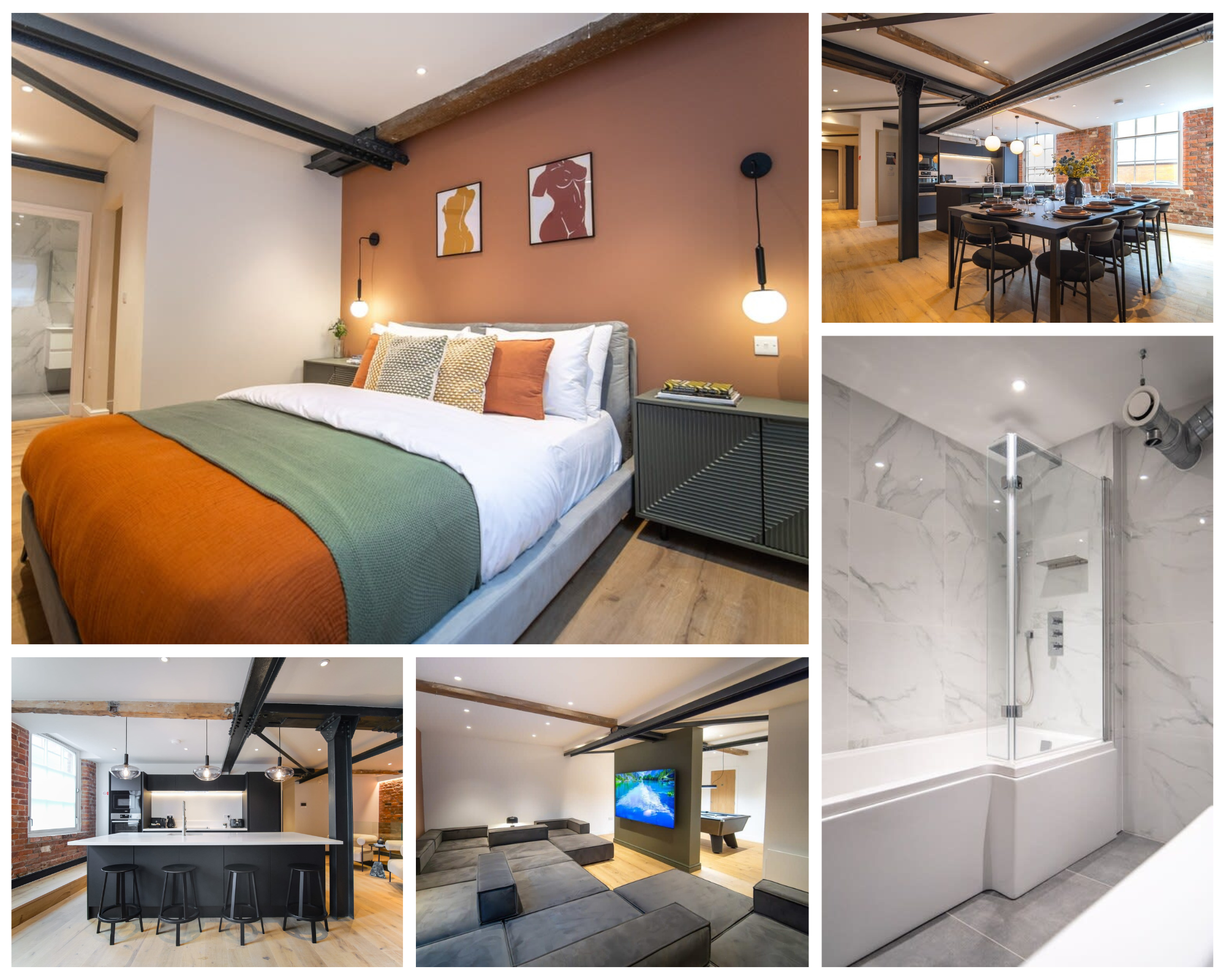 SPANNING ACROSS TWO FLOORS, THE DUPLEX APARTMENT BOASTING IMPECCABLE AND COLOURFUL INTERIOR DESIGN, OFFERING A TRULY UNIQUE AND LUXURIOUS STAY, COMPLETE WITH A POOL TABLE AND A FUN CINEMA-STYLE LIVING SPACE.